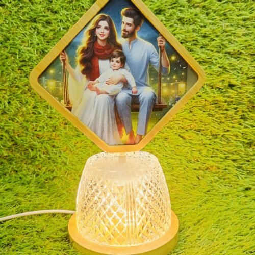 مصباح خشبي بإطار ألماسي وصورة مخصصة